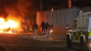 Tientallen relschoppers gooiden maandag ruim veertig brandstofbommen naar de politie in Noord-Ierland. Daarmee probeerden ze een politieonderzoek te dwarsbomen naar de zogenoemde New IRA.
