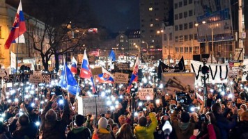 Tienduizenden mensen demonstreren tegen corruptie in Slowakije