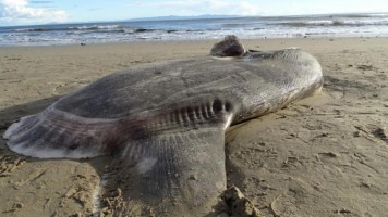 Een 2 meter lange maanvis is aangespoeld op een strand in Californië. Het is de eerste keer dat deze specifieke soort is gezien bij de kust van de Verenigde Staten, meldt het Belgische dagblad Het Laatste Nieuws maandag.