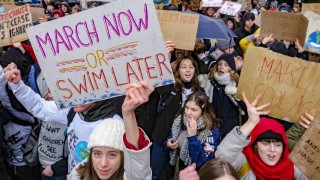 Thunberg geldt als het boegbeeld van de 'klimaatspijbelaars'. Ze begon ruim een half jaar geleden in Stockholm onder schooltijd met een protest voor meer actie tegen klimaatverandering.
