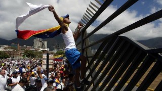 Als reactie gooien de demonstranten stenen terug. Op beelden is te zien hoe mensen hekken die op de grens zijn geplaatst aan de kant gooien en "Queremos libertad" ("Wij willen vrijheid") schreeuwen.